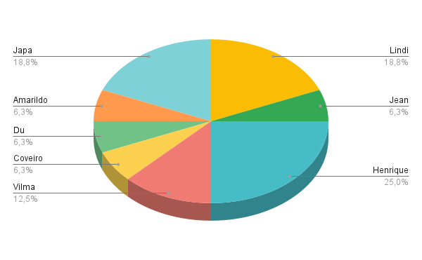 Japa e Henrique ambos resolveram jogar outro jogo que todos nós. Estão competindo para ver quem tem a barrinha maior no gráfico. Henrique novamente….leva 4 lambretas. Não tenho mais comentários para isso. Já j́á a conta vai ficar cara pois vou ter que solicitar para Compras um monitor novo para todos colocarem na vertical para conseguir ver o gráfico dele.